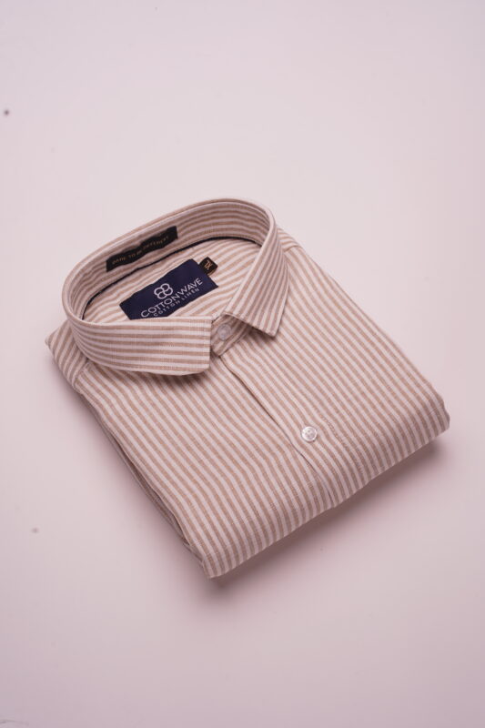 Beige Luxe Pinstripe Casual Shirt